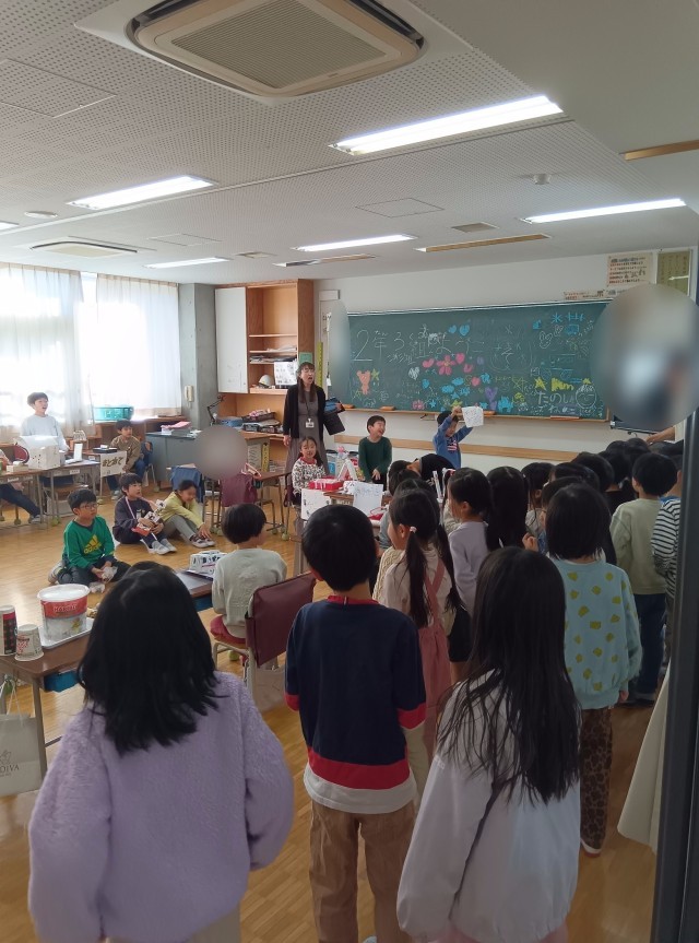 この日に向けて、2年生は準備を進めてきました。何度かお伝えしているおもちゃ作りの時間は、生活科の学習、そして国語の学習に向けてのシンプルに自分で楽しく作っているという感じで、まだそんなにこの交流に向けての意識を感じることはありませんでした。ただ、おもちゃができた後、交流に向けての準備を進めているときには、向かっている先が明らかに変わったのを感じました。説明を考えたり、看板を作ったりしている2年生は、ただおもちゃを作っていた楽しそうな様子とは違って、この後の交流に向けて明らかに気持ちが高揚しているのが分かりました。わくわく、どきどき・・・1年生として、何かをしてもらうことが多かった1年間を経て、2年生になり、下級生ができ、成長した自分・・・そこには、様々な気持ちが含まれていると思います。ただ、そこには単純に誰かを喜ばせたいという純粋な気持ちが大きいように感じました。