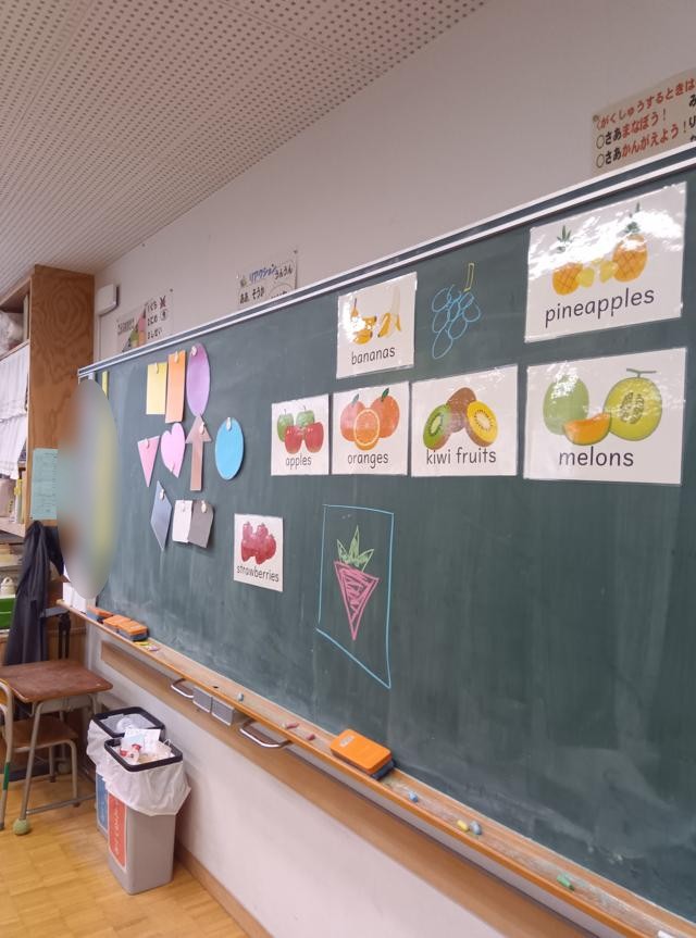やるうちにコツがつかめてきたようで、どんどん進みます。最後はfruitがずらりと並びました。fruitの名前もしっかり発音しました♪