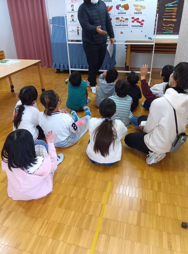 3つのセクションに分かれてALTとやり取りをします。それぞれ、結構身近なシチュエ―ションで、子どもは目一杯楽しんで活動していました。