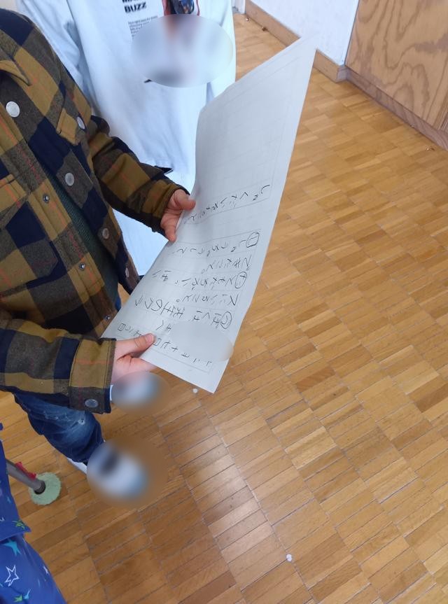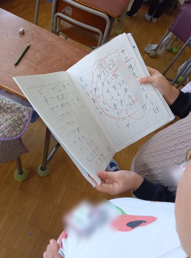 書けた手紙を読み合ってお互いに確認していました。友達、先生、親戚などなど、手紙を渡す相手を誰にするかはそれぞれが決めるそうです。それぞれが会えるタイミングで渡すということなので、お正月のなどにしか会う機会がない御親戚などには、この機会にぜひ直接お渡しいただければと思います。
