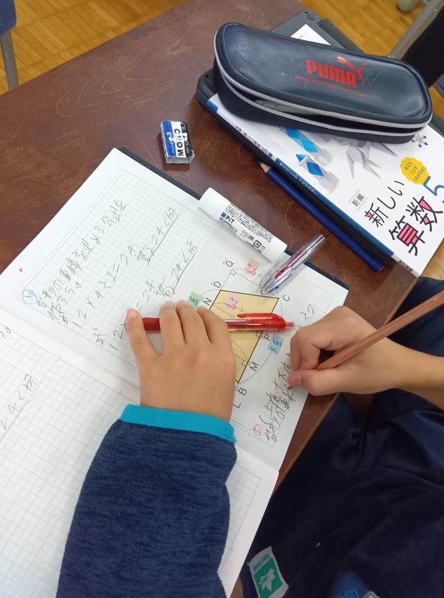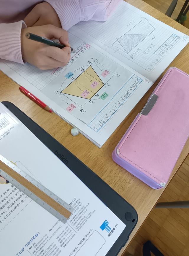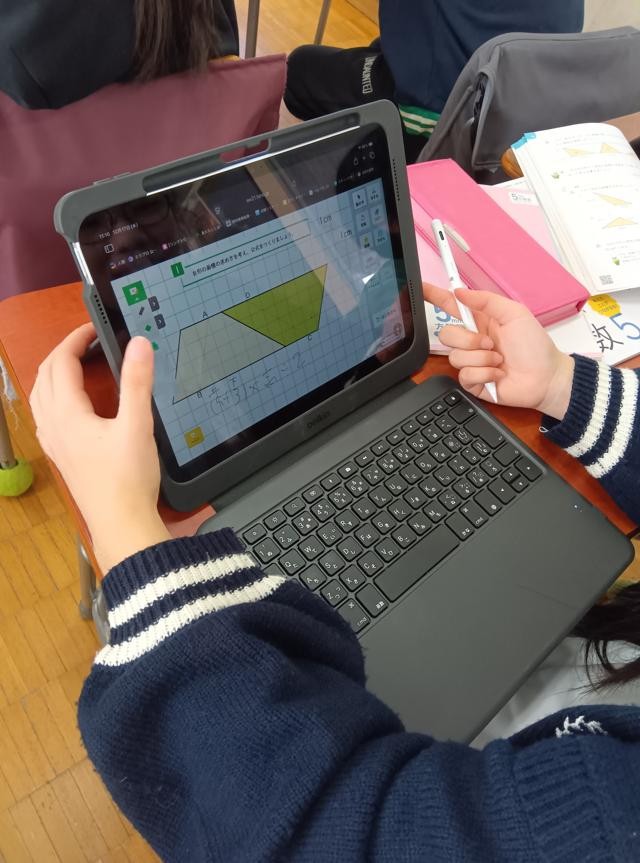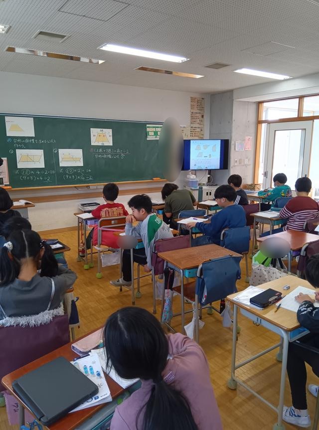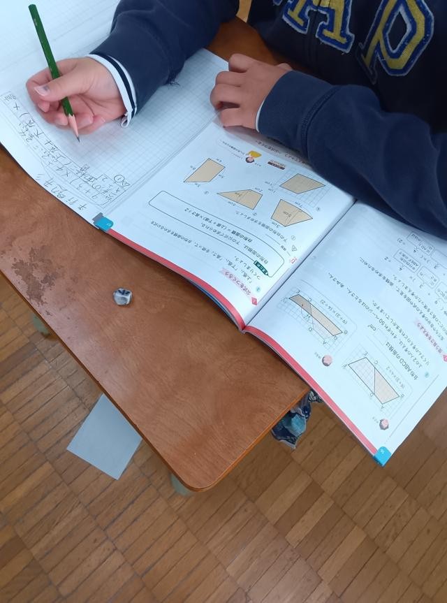 5年生の算数では、図形の面積の学習を行なっています。台形や平行四辺形の面積を求めるようです。