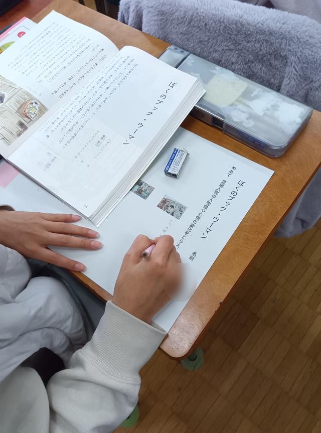 この日は、「人物像」と「心情の変化」を追い、まとめていました。これで物語の大枠をつかみます。