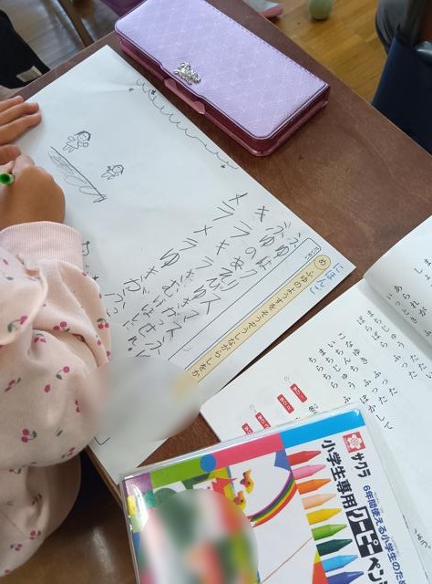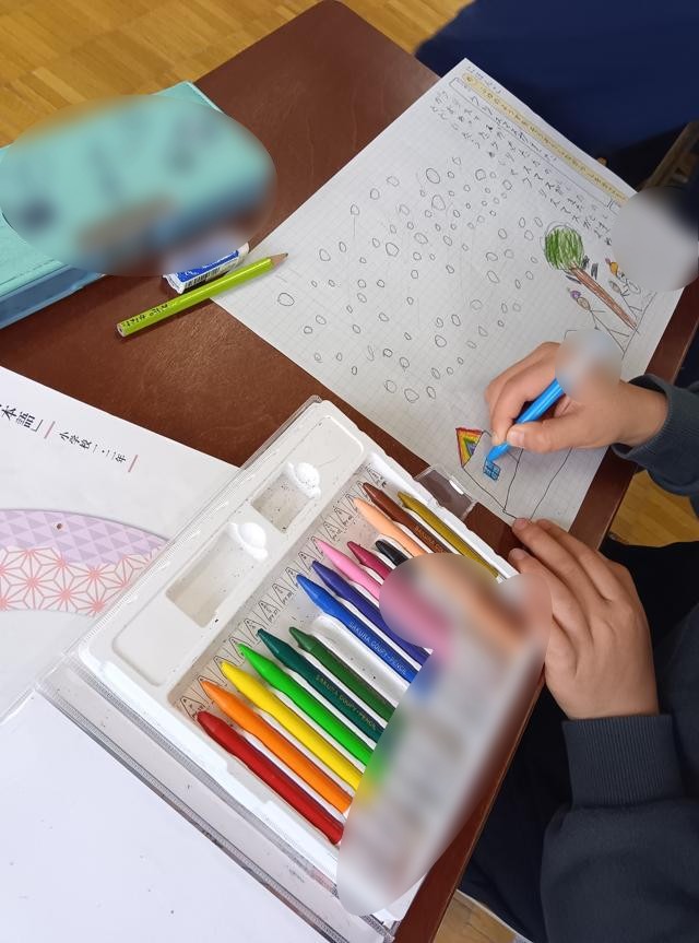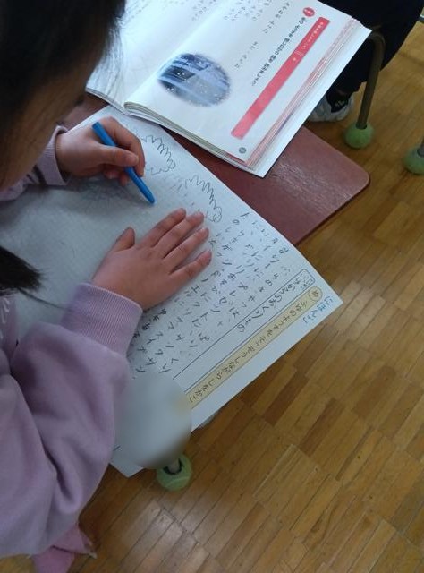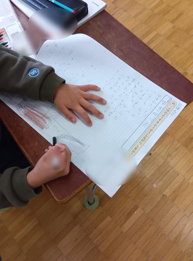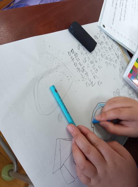 1年生の教科日本語の授業です。まど・みちおさんの「みぞれがふった」という詩を読んで、冬の様子を感じていました。その後は、冬の景色を思い浮かべながら、自分たちでも詩を詠んだり文章を書いたりしています。