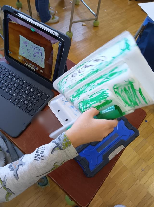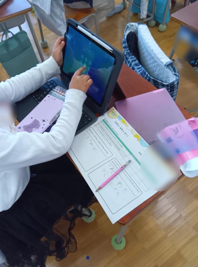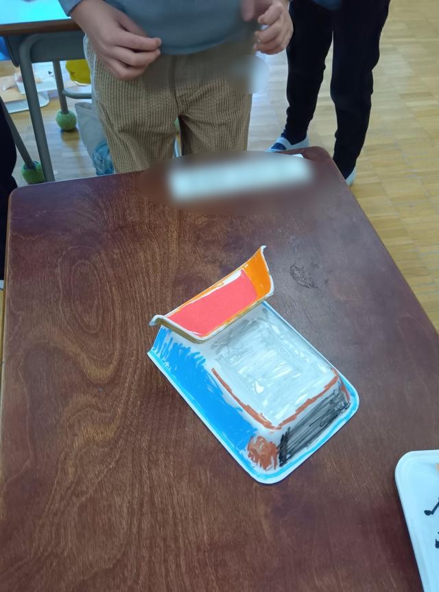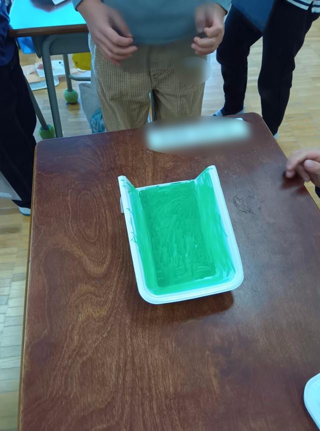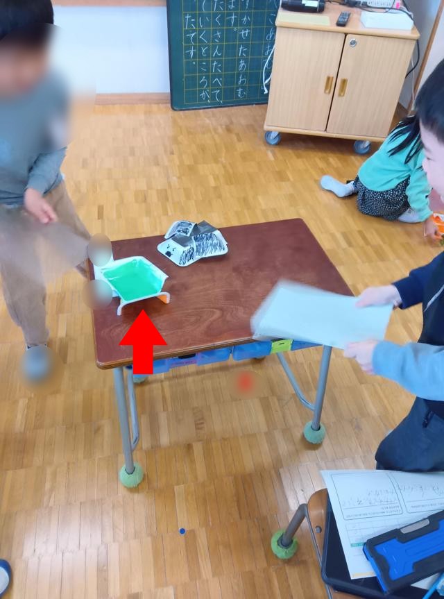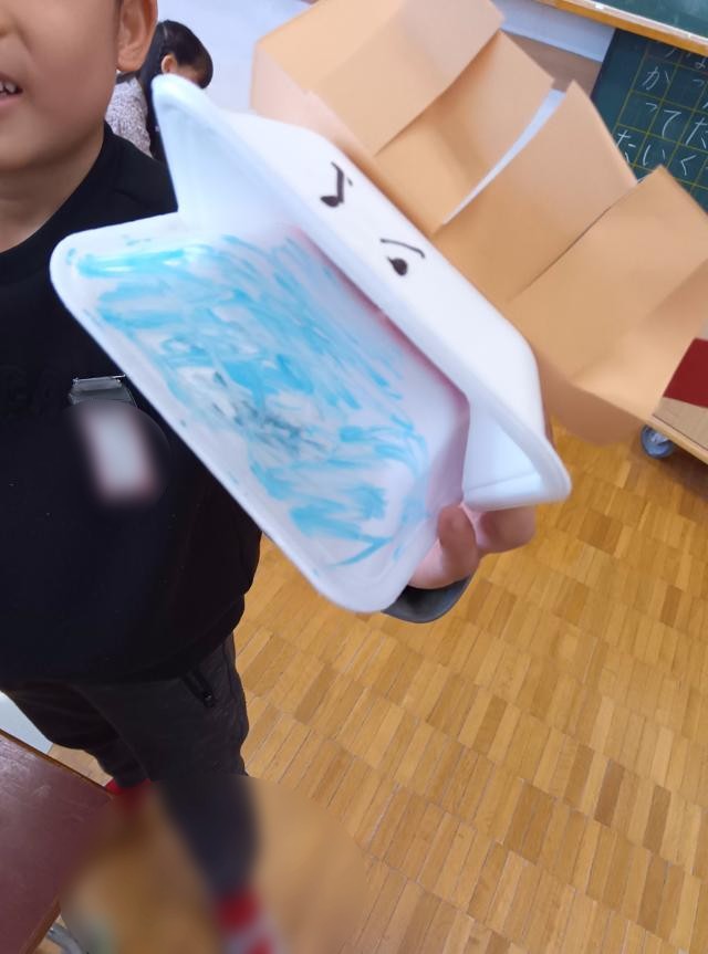 風で遊ぶおもちゃを作っていた1年生、車体が完成したようです。