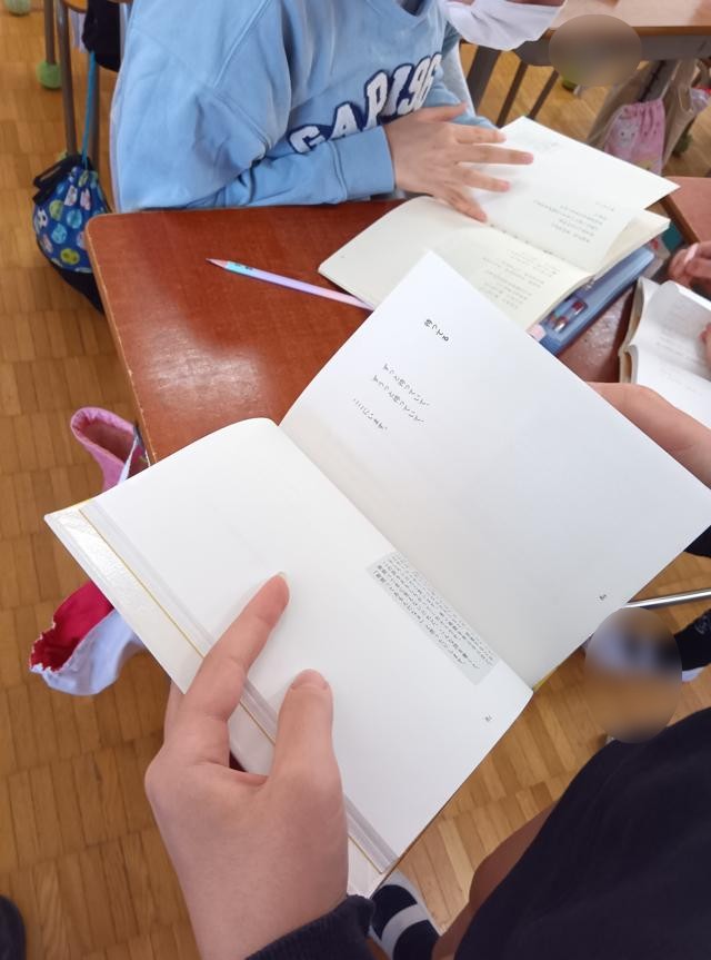 学校の図書室には、学習で使うこともあり、結構詩集があります。普段図書室を使っていても、よほど詩が好きな子でないと、なかなか詩集にたどり着くことはないかもしれませんが、これを機に詩に興味が広がったら、ぜひ図書の時間などにも読んでほしいです。図書室で詩を読む・・・そのうちに図書室で詩を詠む・・・すてきです。