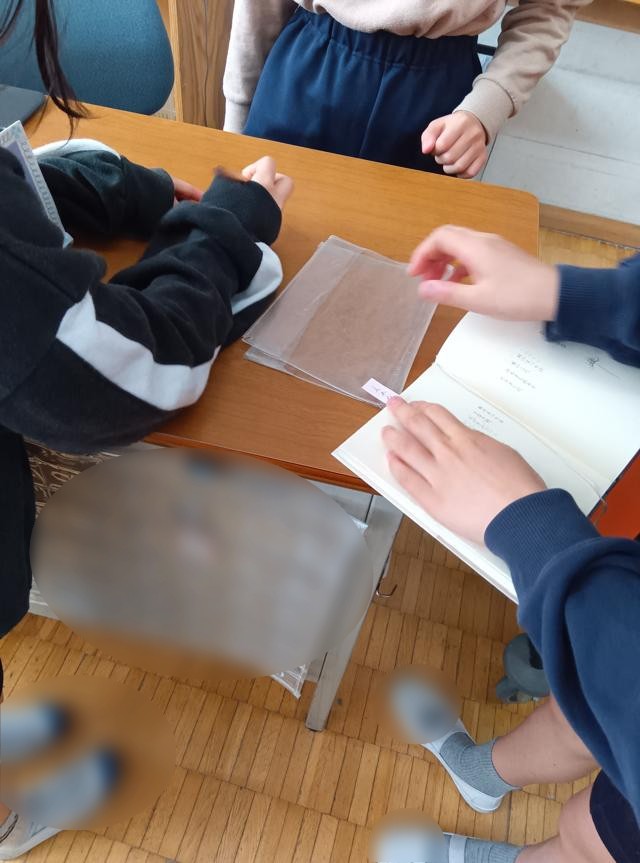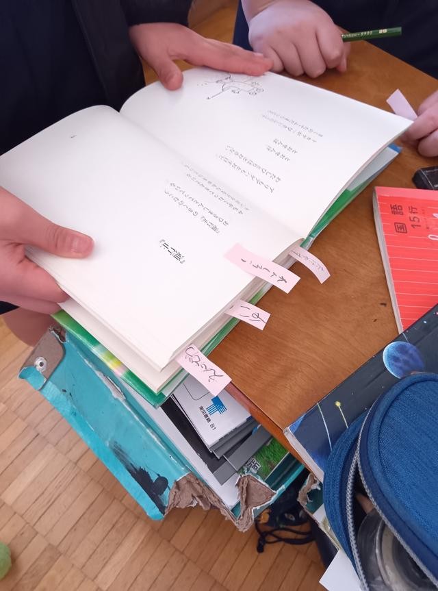 まずは詩集から好きな詩を選びます。教室の前には、ワゴンでたくさんの詩集が運ばれていました。詩を決めて、その詩のよさを探していきます。そのよさを伝えなくてはいけません。どこが好きなのか、何がよいのか・・・言語化、大事です。