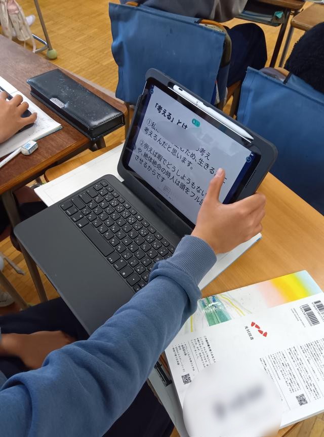 今日は国語の話題が多くなりましたが、6年生も国語です。6年生は、「考える」ことについて「考えて」いました。単元名は、