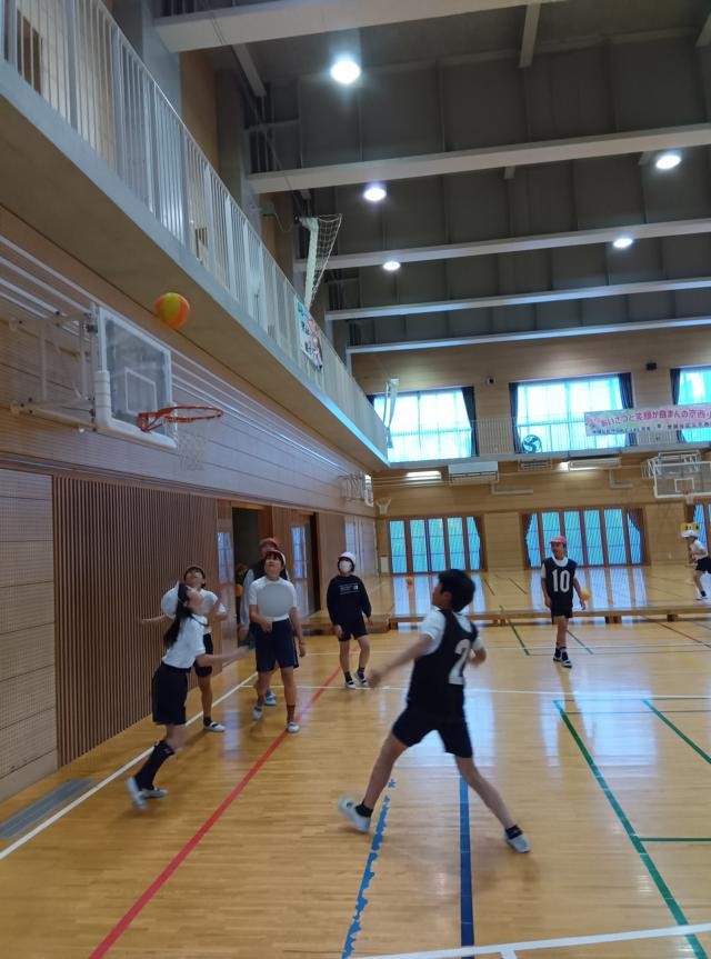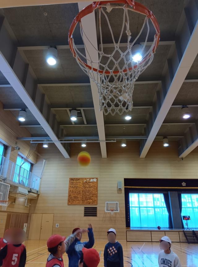 さて体育館の体育ではバスケットボールをしていました。外の持久走やサッカーと共に、こちらも体が暖まりそうで冬にちょうど良い運動です。あ、京西小学校の体育館は、寒くありませんでした・・・けがには気を付けて。