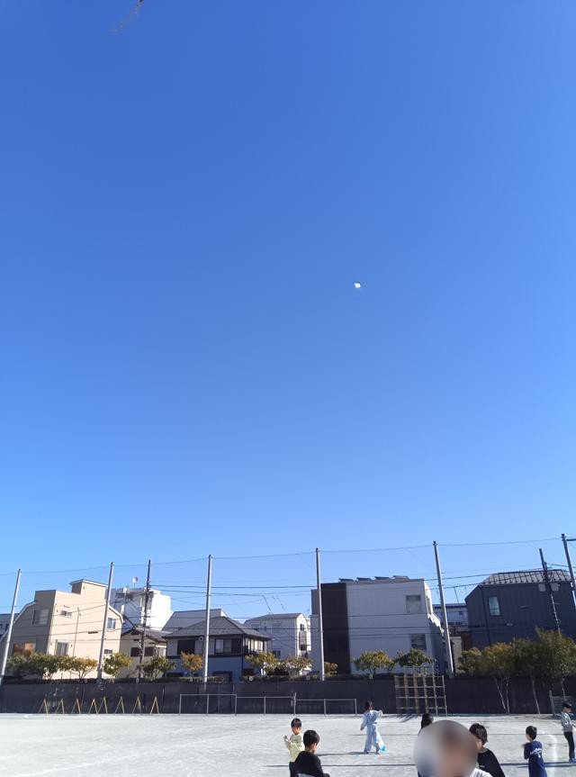 最後の写真、ものすごく高く揚がって、一瞬外に飛び出していきましたが、先生が慌てて「巻いて~!」と引き戻していました。昨今なかなか凧を揚げる場所もありませんので、横にさえ飛び出さなければ校庭は最高です。