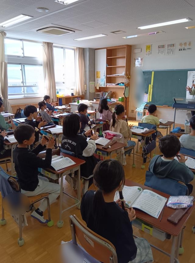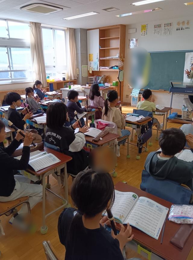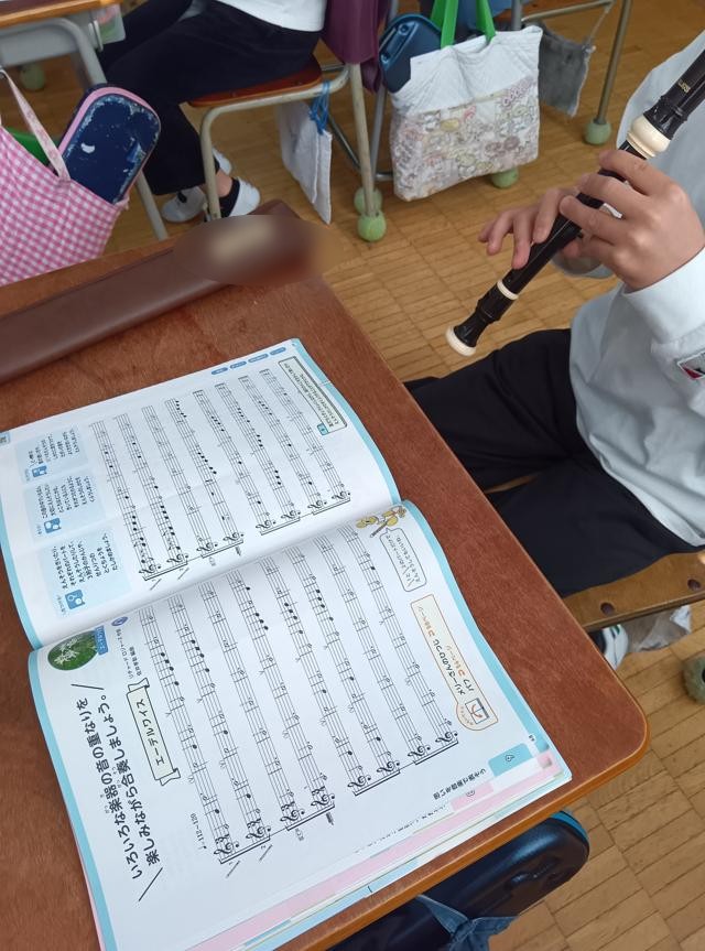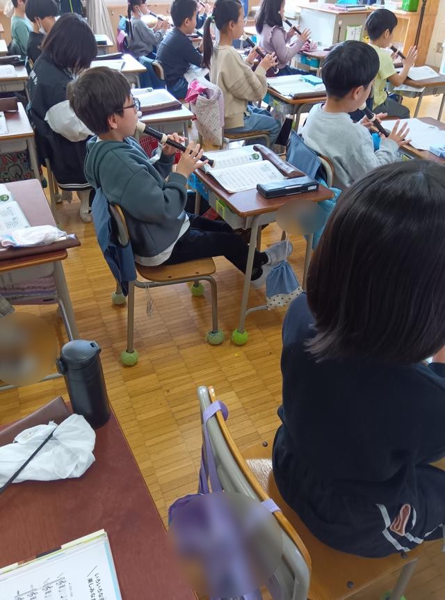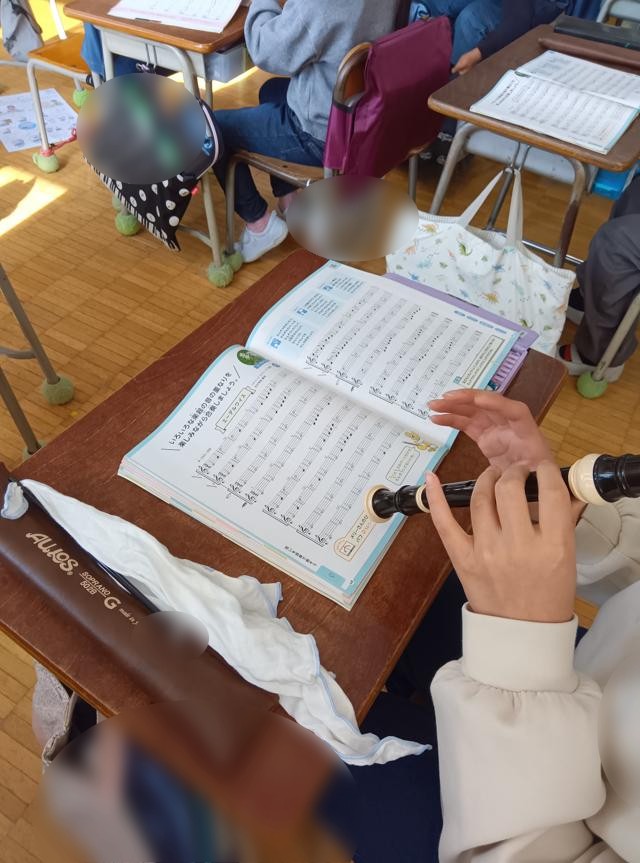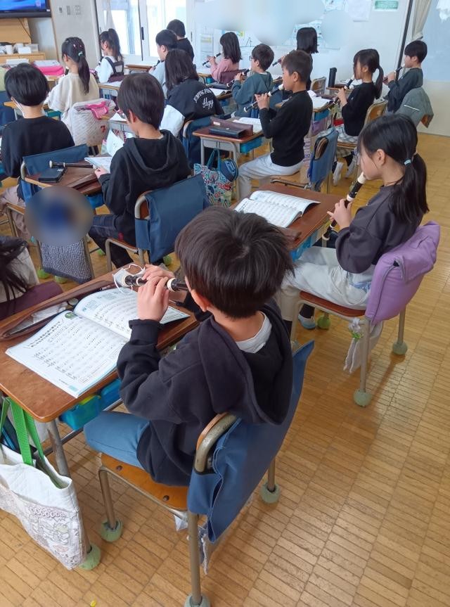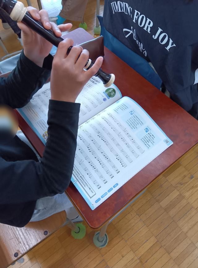 きれいな音色に惹かれて3年生の教室へ。リコーダーの練習をしていました。