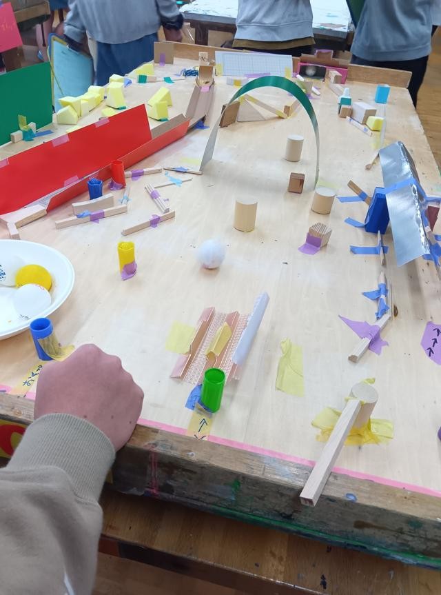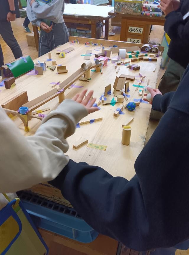 やってみるとおもしろい!ついつい繰り返しやってしまいます。6年生もかなり夢中になってピンポン玉をころころしていました。