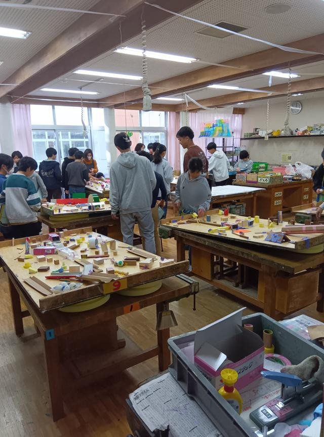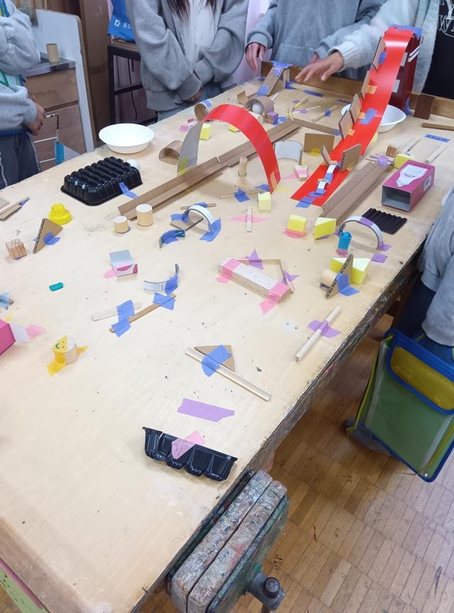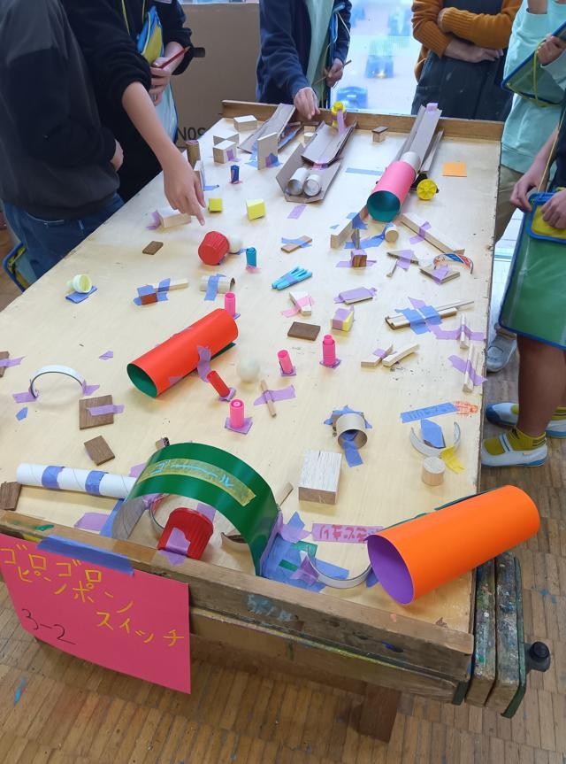 図工室の3年生共同作品「ピンポンころころ」にも、体育館を離れて鑑賞に行きます。