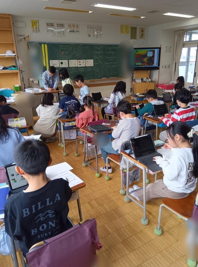 3年生のが外国語活動です。キャラクターブック(?)のようなものを作っているところでした。