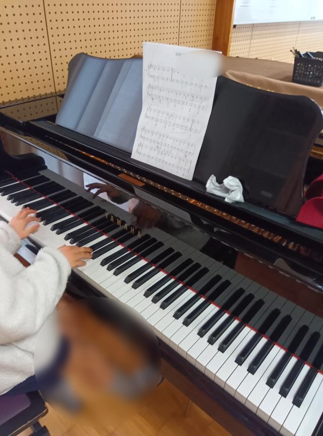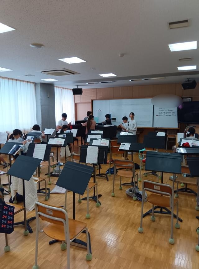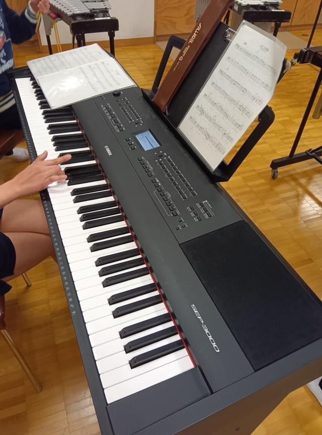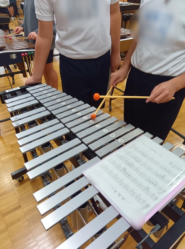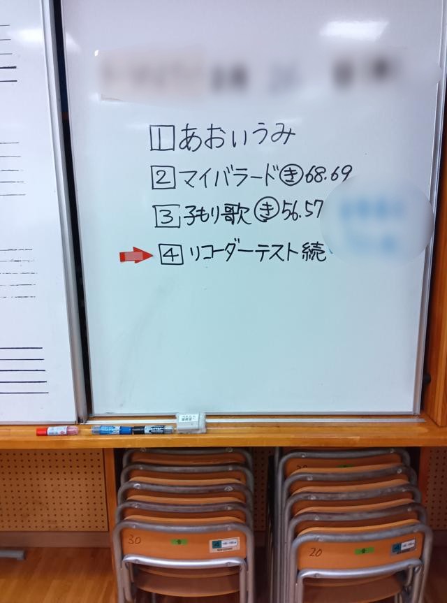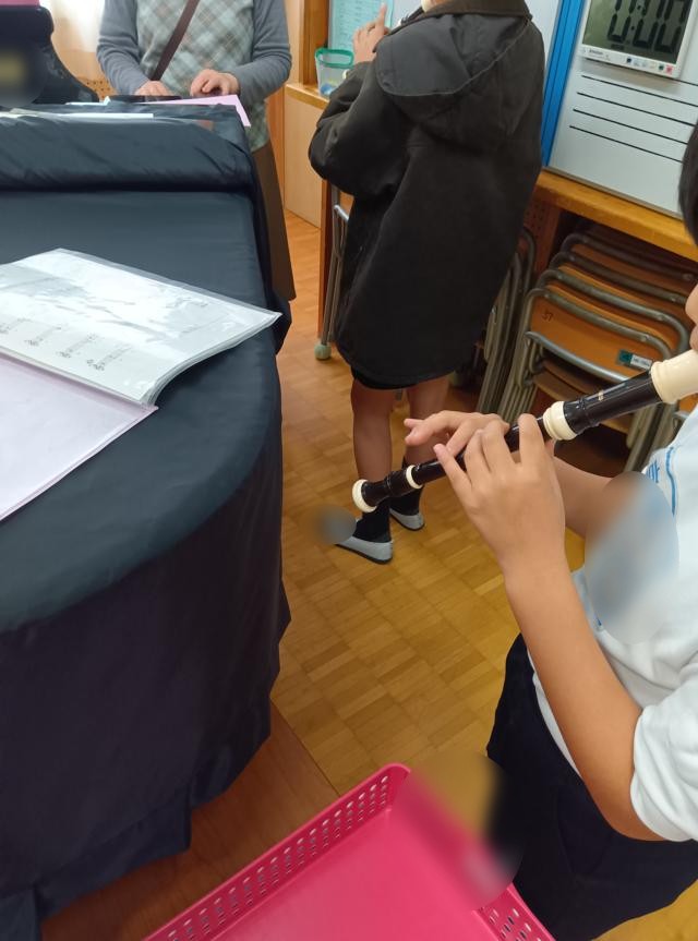 リコーダーは、高音から低音まで幅広い音域のため、なかなかの難しさです。特に、高音のサミング(後ろの穴を押さえる親指を半分空けて高音を出す指の押さえ方)で出す音が割れやすく、なかなかきれいにそろいません。これから約1か月で式に向けてしっかり仕上げてきてくれると思いますので、途中様子を見守りたいと思います。