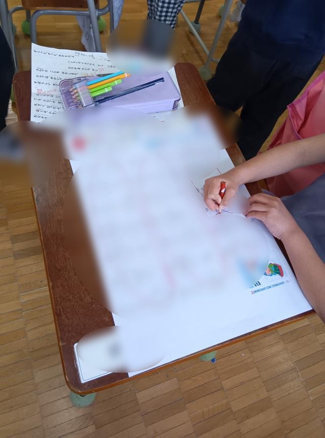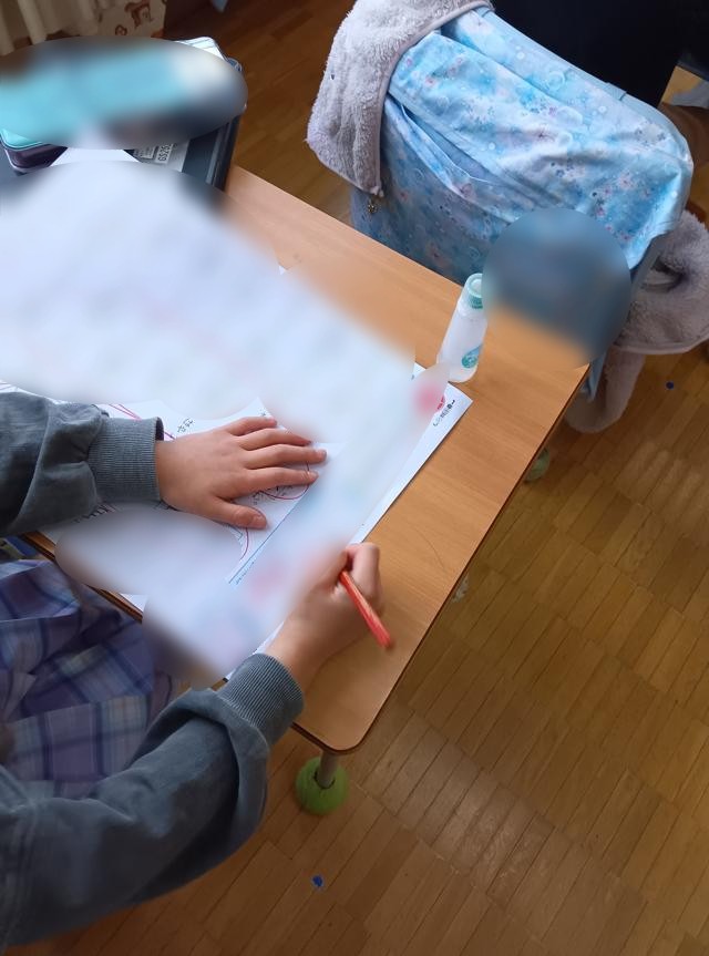 1年生が漢字テストの直しをしていました。1年間のまとめの漢字テストのようです。