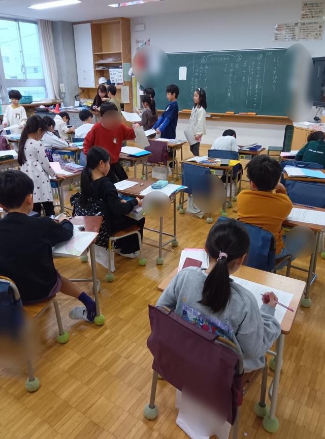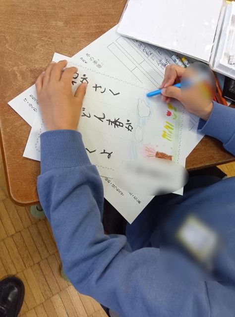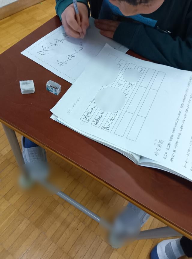 2年生が「俳句」を詠んでいました。教科「日本語」の授業だと思います。