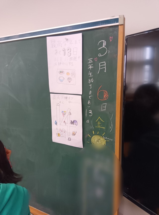 卒業する6年生のカウントダウンはよく見ますが、5年生のある教室にもカウントダウンの紙がありました。