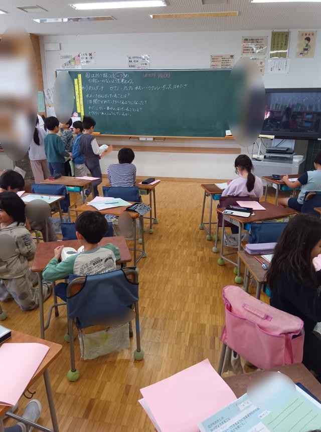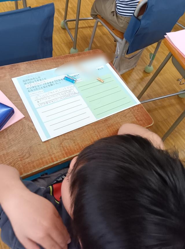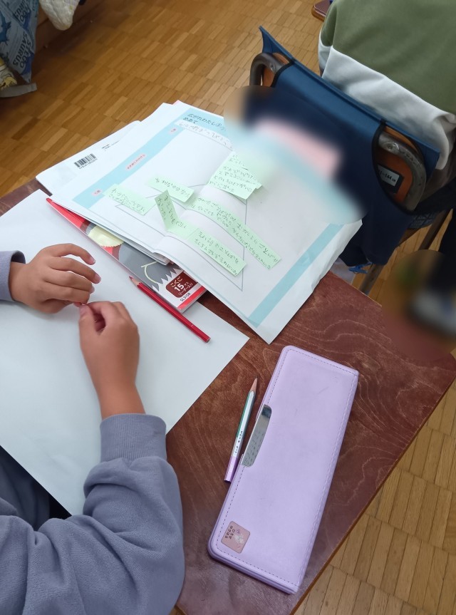 この前の時間には、思考ツールのピラミッドチャートを使って、発表する内容を絞り込んでいたようです。付箋に自分のできるようになったことをたくさん書き出し、ピラミッドの上に向かって、検討しながら内容を絞り込んだのです。2年生、思考ツールなどもうまく活用できるようになってきました。
