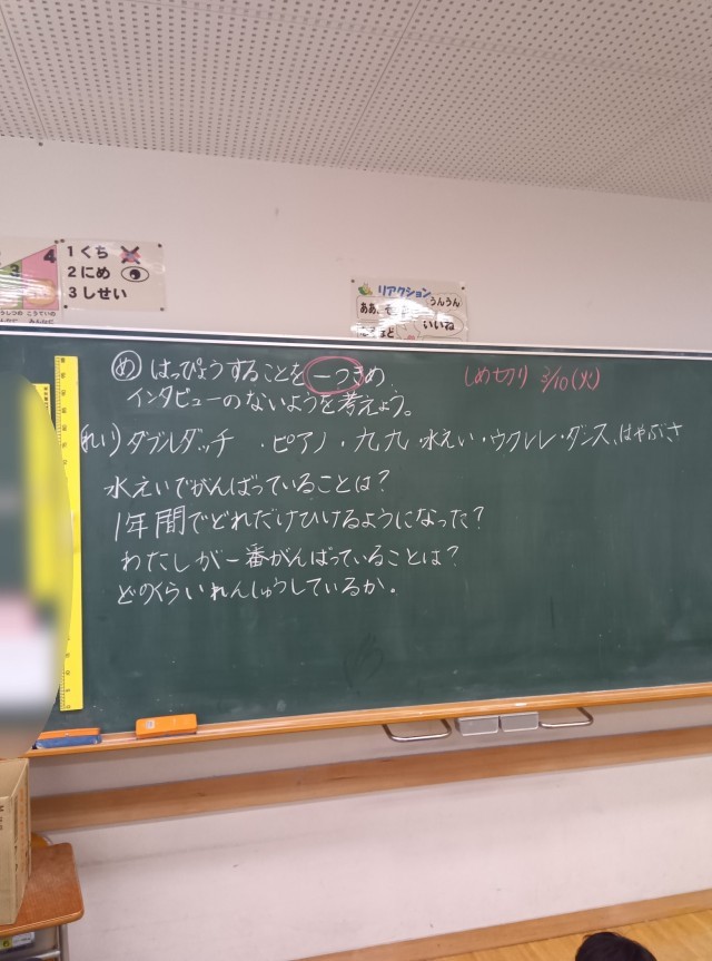 小学校では、節目節目でこうして自分の成長を振り返る学習や活動があります。今の自分を知って成長を感じ、次の成長につなげる大事な学習・活動です。インタビューへの御協力、よろしくお願いします。
