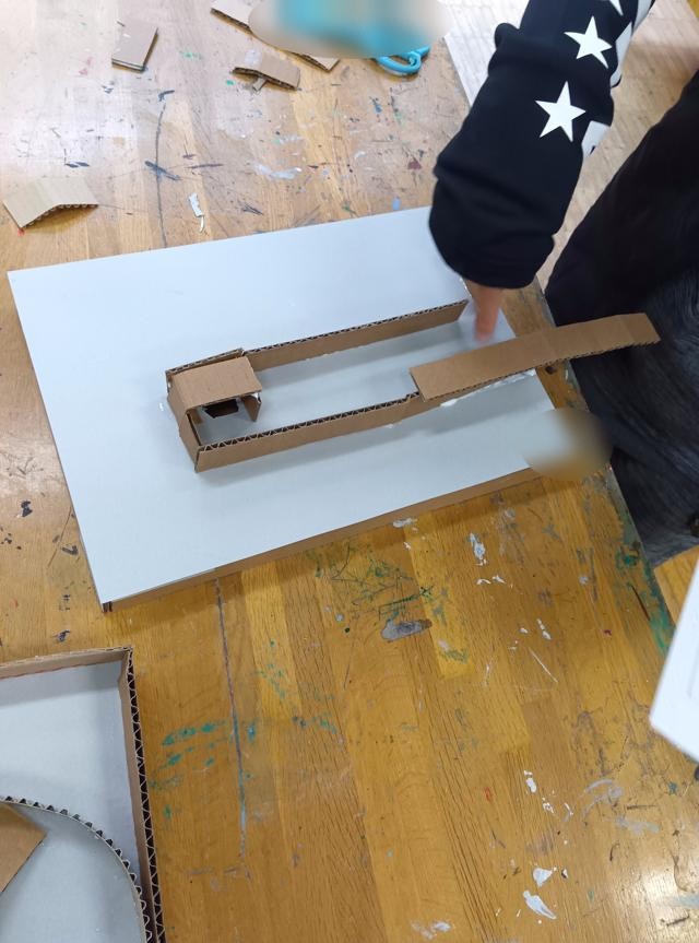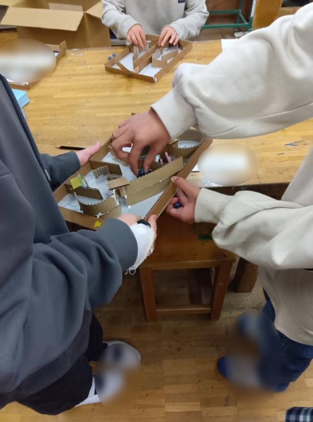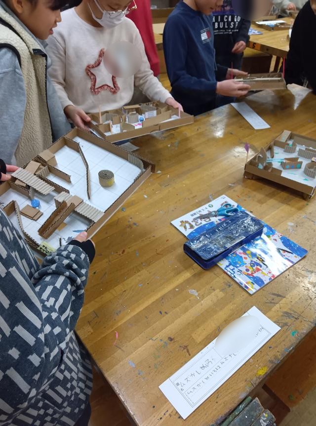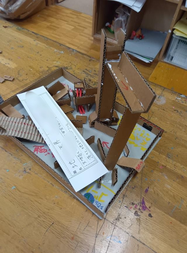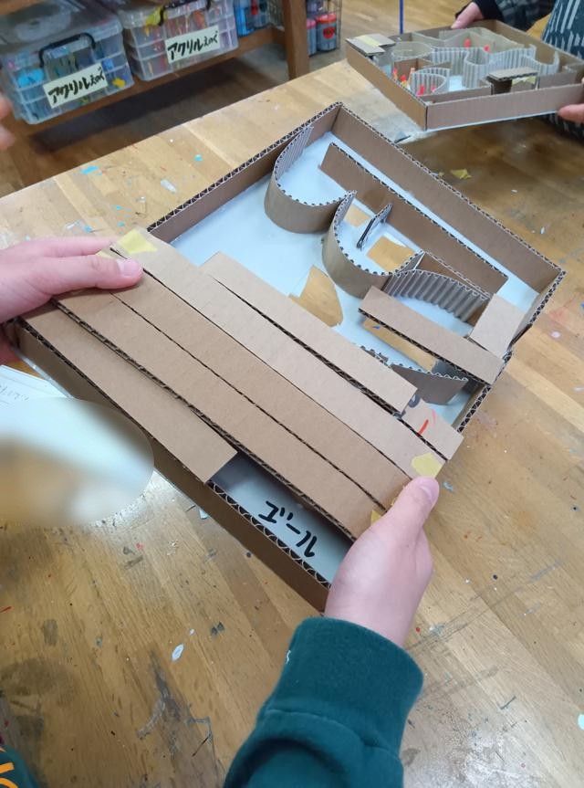 4年生のじぐざぐ迷路、、完成してみんなで遊んでいました。