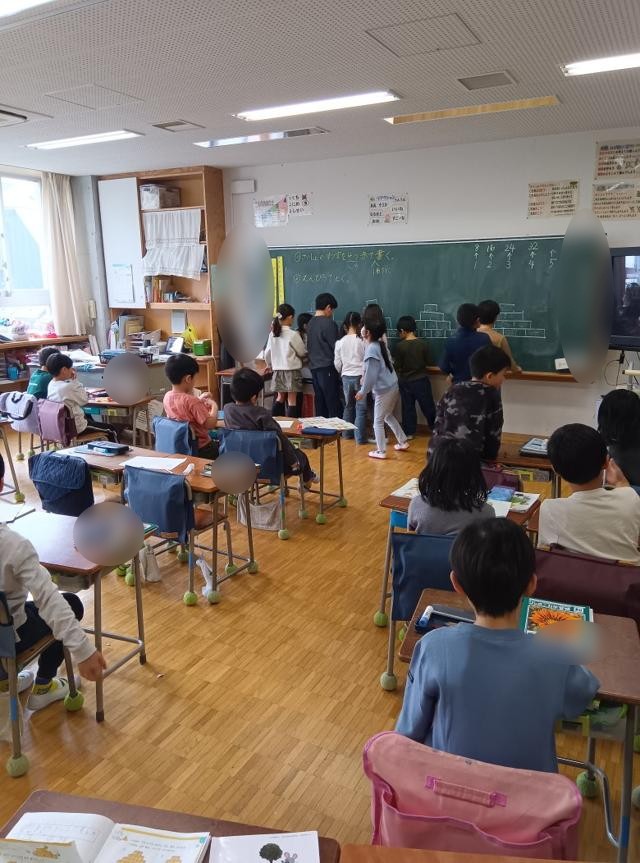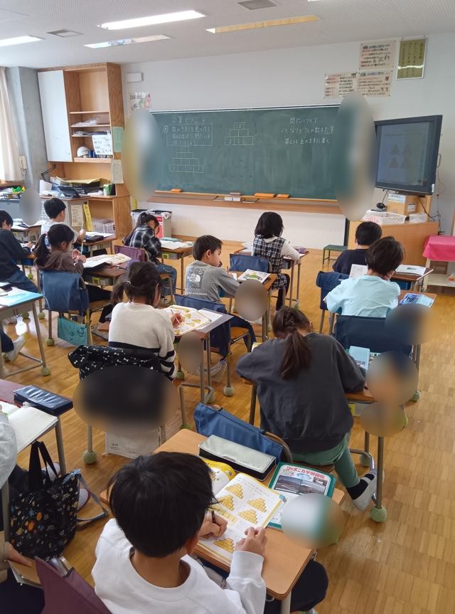 2年生が「計算ピラミッド」を上っていました。