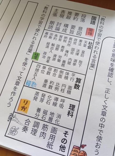 教科云々に関わらず、語彙を増やしていきたいですね。語彙は力です。表現の幅も広がっていきます。それには、とにかく分からない言葉に出会ったらすぐに調べること!私は今だにそうです。すぐ調べます。方法は何でもいいです。国語辞典、漢字辞書、百科事典、インタ-ネット・・・調べるのはインターネットが便利ですが、むしろ言葉を増やしていくのなら、調べるのではなく、国語辞典、漢字辞書、百科事典を「読む」というのもおもしろいですね。時間の使い方として、こんなに贅沢な使い方はありません。