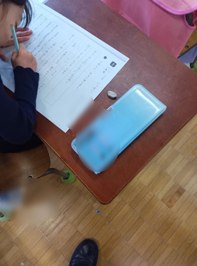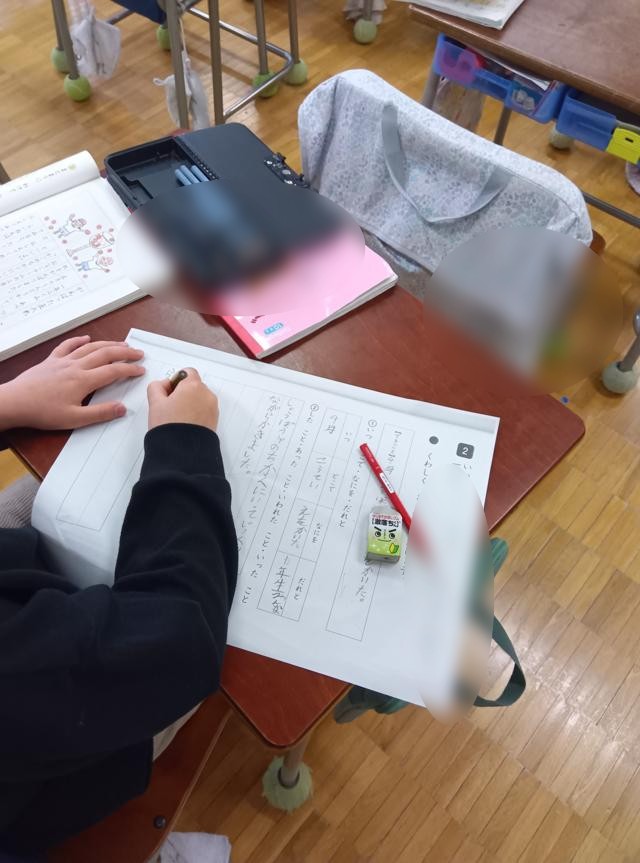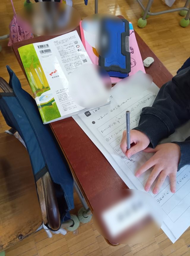 国語の学習です。初めて小学校で過ごした1年間の出来事の中から、自分で題材を選び、構成を整えて文章にまとめていきます。