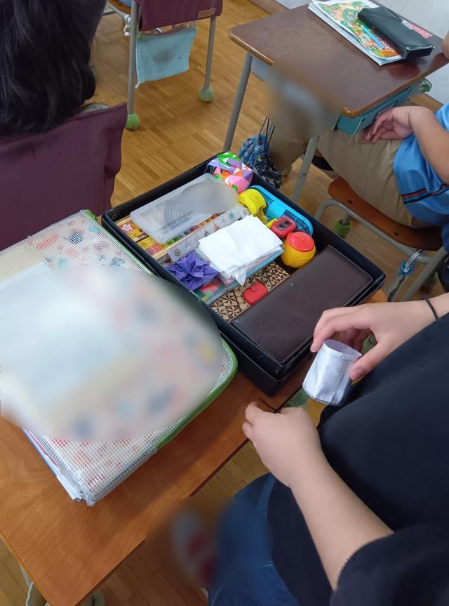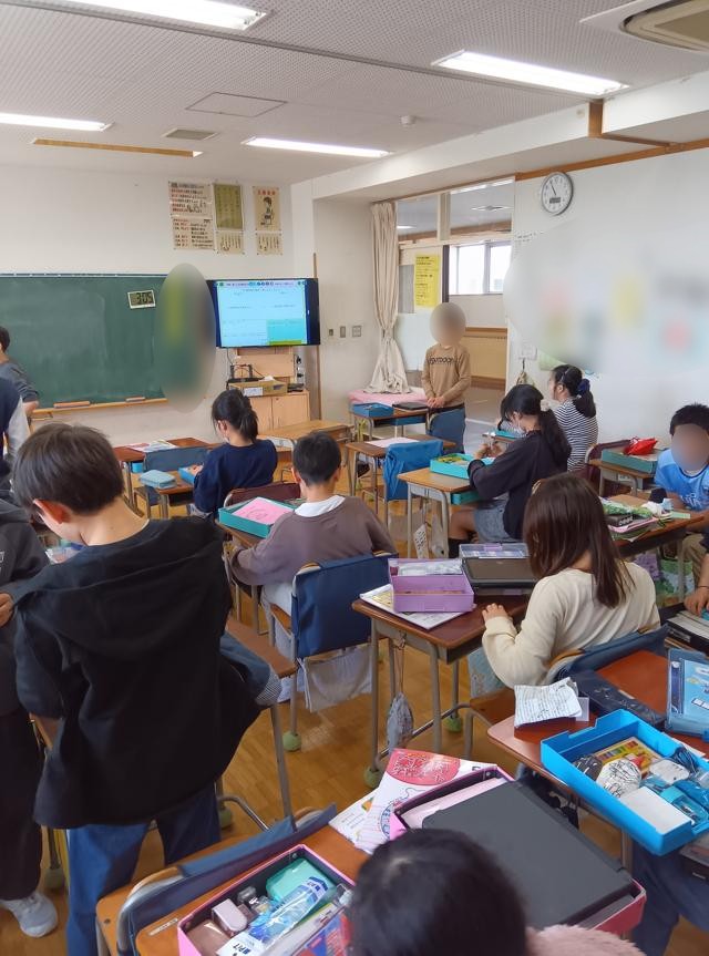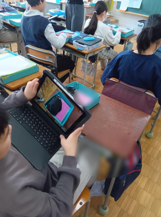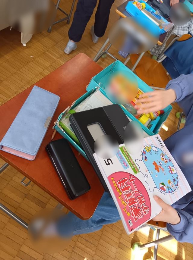 その後は、机のお道具箱の中の整理・整頓をする活動に入りました。整理・整頓を行い、使用前、使用後で写真を撮り、ポイントを確認していきました。