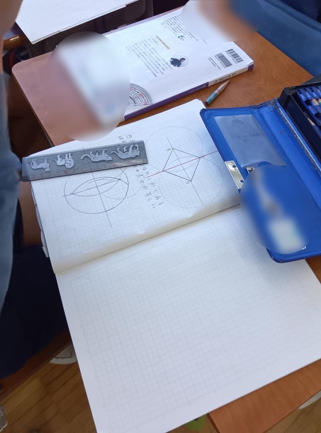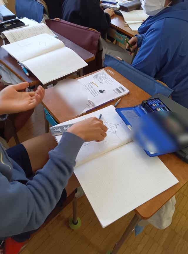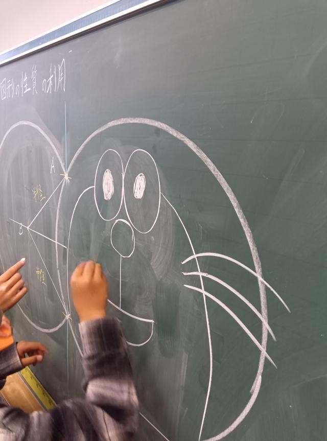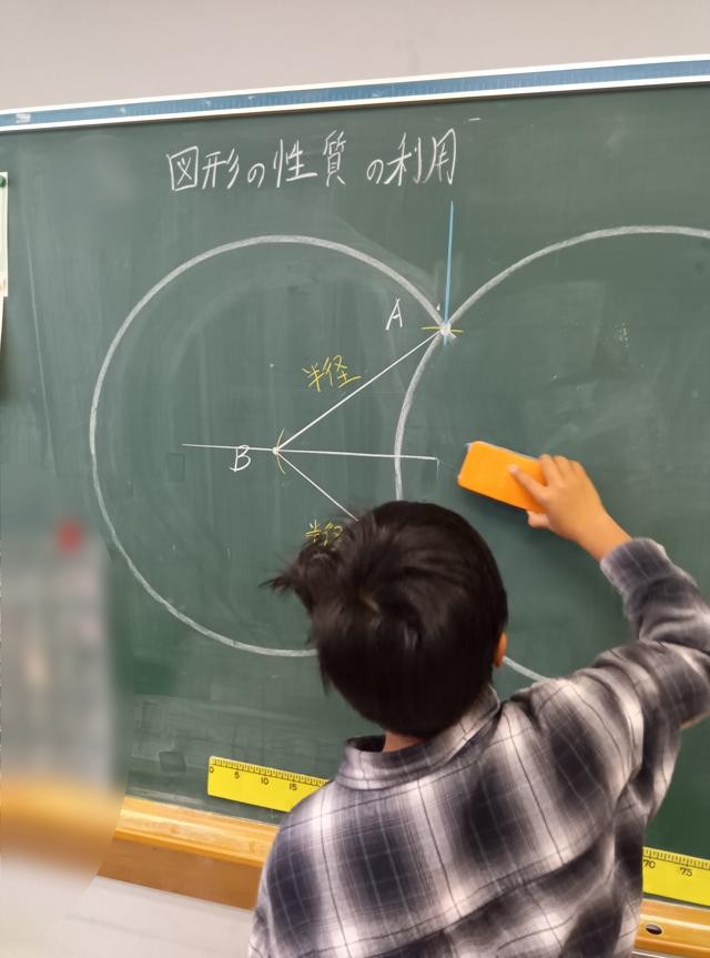 図形について考えているのは、中学校体験コースでしょうか。授業が終わって、黒板を消しているなと思っていたら、次の瞬間には、何ということでしょう♪