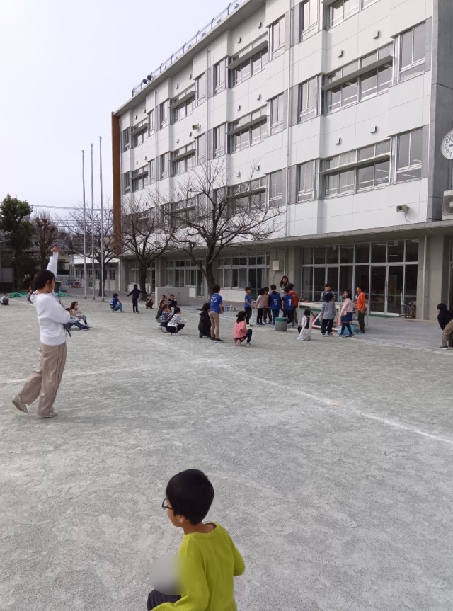 2年生は、他の学級にも声をかけて一緒にお楽しみ会をしていることがあるので、先日準備していたものの一部か、それとも関係ない別の会かは分かりませんが、今日は朝から学年で集まって楽しそうに活動していました。ゲームの進行の子がルールや開始の合図などをしっかり伝えて進めていました。