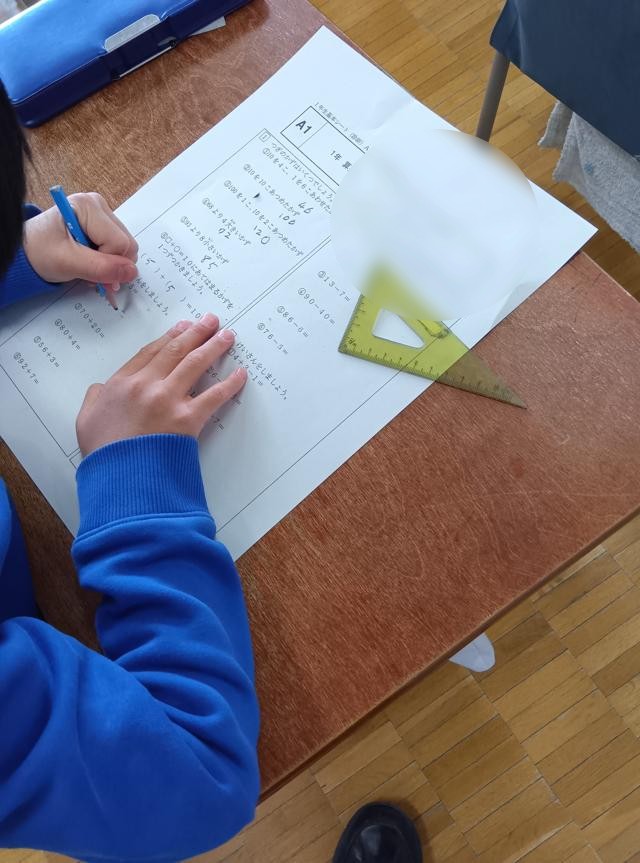 別の学級では、教科書の問題が終わって、「東京ベーシックドリル」の学年のまとめ問題(診断シート)に取り組んでいました。
