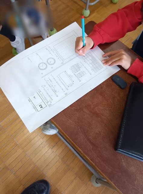 1年生の算数は「そうふくしゅう」、1年間の復習に入っていました。