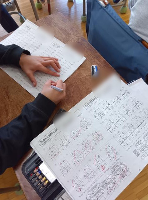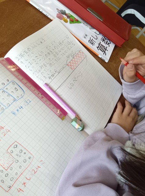 2年生の算数はまとめの問題や補充の問題に入っています。
