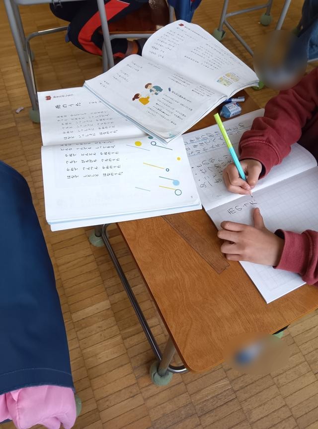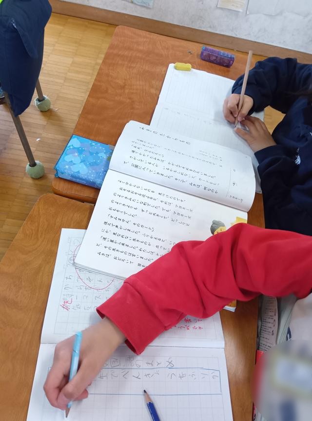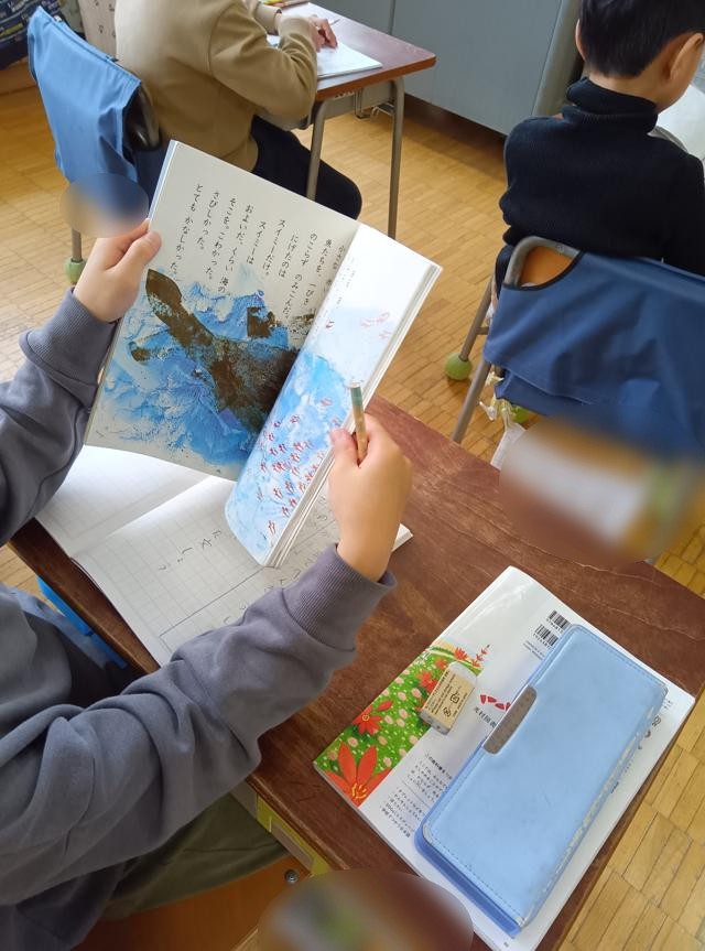 2年生が国語の1年間を振り返って、いろいろな文章をもう一度読んでいます。物語文で、