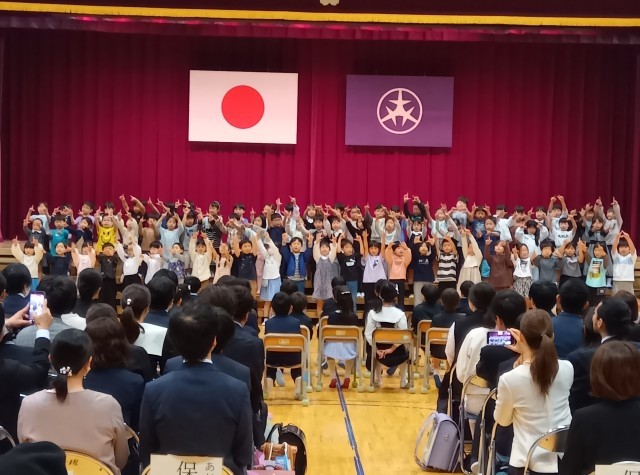 6年生の代表児童は、勉強や行事など京西小学校の楽しいところを紹介し、「失敗しても大丈夫。困ったら6年生を頼ってください。」と話しました。