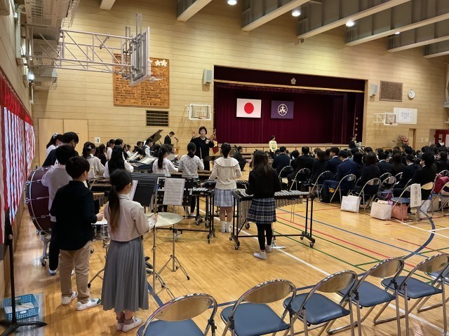 2年生は1年生の勉強や好きな給食などを発表し、全員で「京西さくら組」の手話を披露しました。