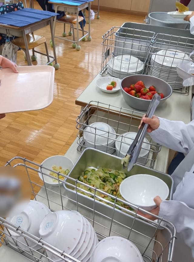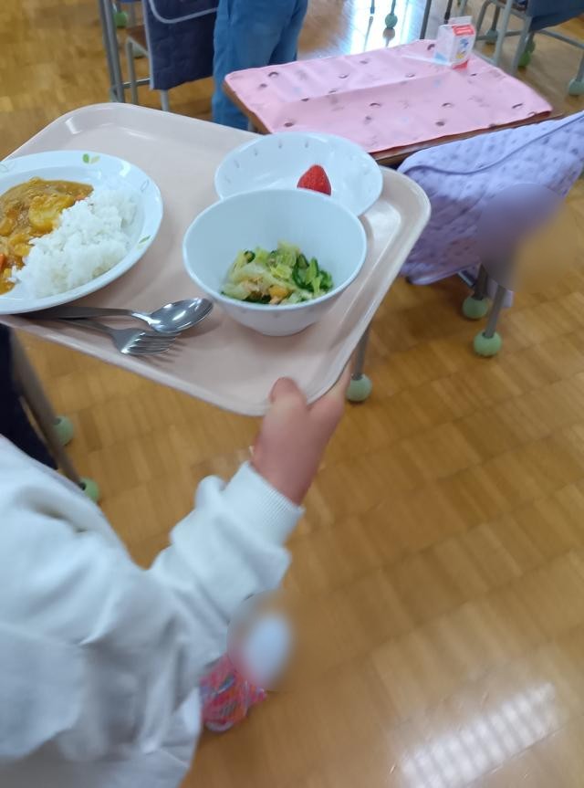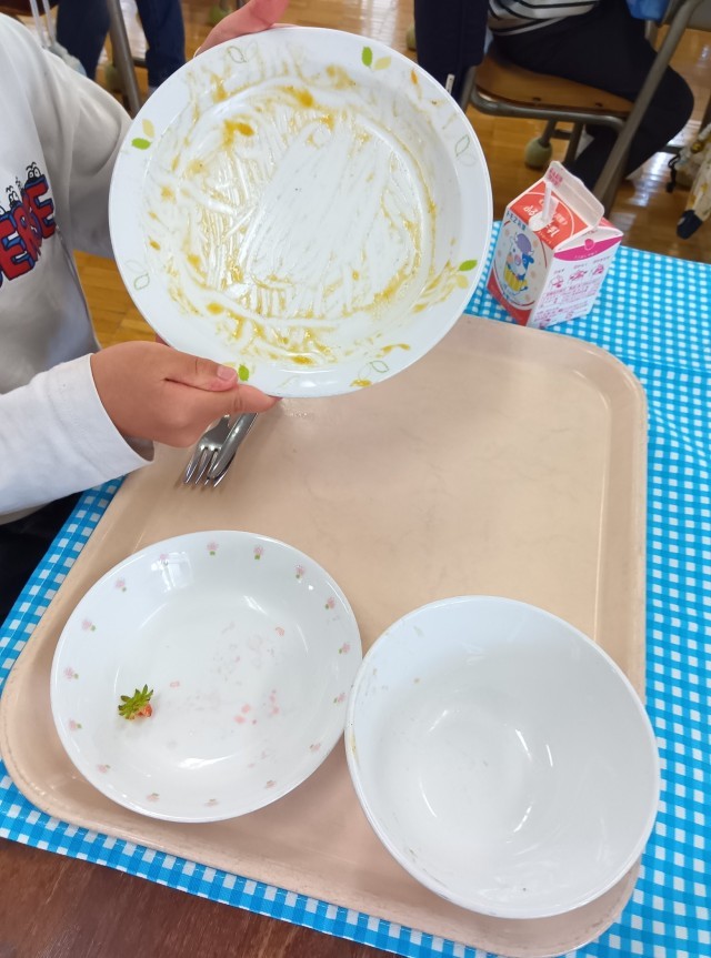 給食は、できるだけがんばって食べられるようになればとは思いますが、無理に食べさせるようなことはありません。一口から挑戦していきます。お家でも励ましてあげてください。今日は見ているとみんなよく食べていました。おかわりはそんなになかったんですが、殺到していましたし、全く食べられないという子もいなかったように思います。感心です。