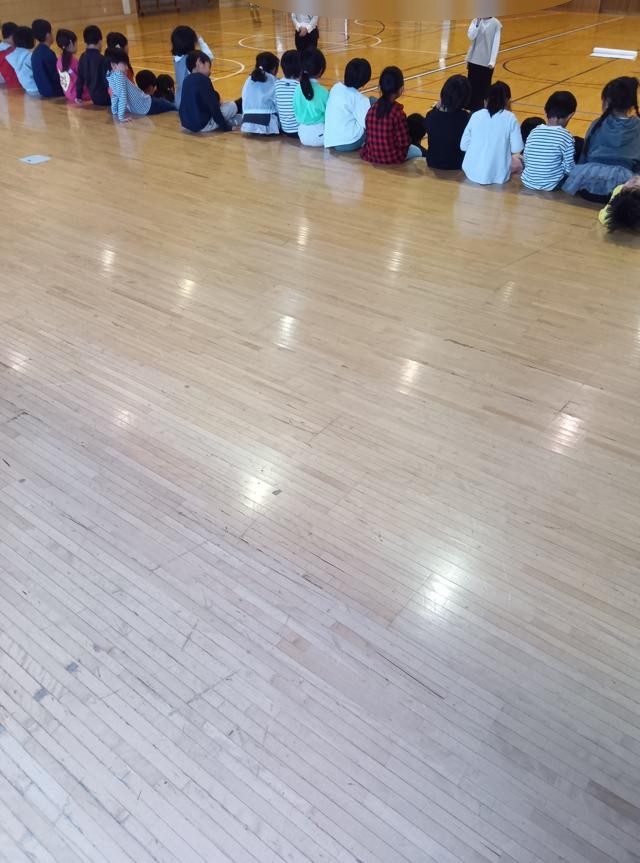 今日は、体育館でいくつかの学年が集まっていました。1年生は、しっかり1時間。
