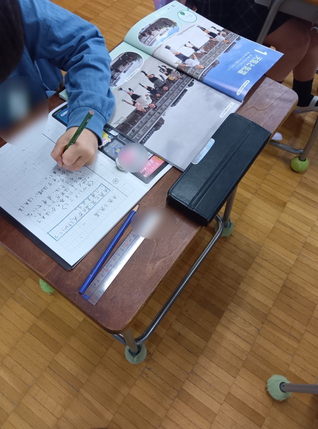 と聞いて、「ああ、『白いぼうし』ね。」と分かった方は小学校エキスパート。4年生の国語の物語文「白いぼうし」の学習です。物語を読んで初めの感想を書いていました。あまんきみこさんの名作で、 空いろのタクシーにのった運転手松井さんと不思議なお客さんとの出会いを描くシリーズの中の1つです。小学校の教科書に載って久しいので、保護者の皆さんで「習った!」という方もいるかもしれません。名作です。このお話は、「ファンタジー」に分類され、少し不思議な場面やできごとも出てきます。そのあたりが子どもたちの想像力を掻き立て、また、読み取っていく学習課題にもつながっていくところです。