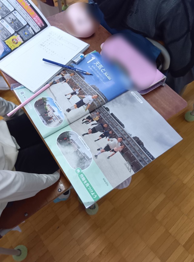 理科の学習では、初めの単元「天気と気温」の学習に入っていました。まずは自分の経験から、天候による気温の変化について分かっていることや知っていることを挙げていました。天度の学習でもまずはこの自分の経験や知識を確認することが大事です。そこからはっきりとしないところや疑問を明確にし、実験や観測で確かめ、知識として自分の中に定着させていきます。