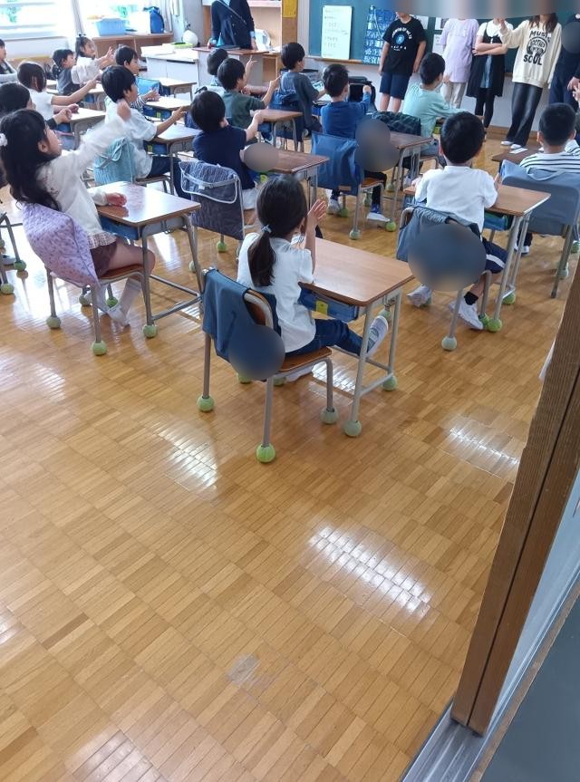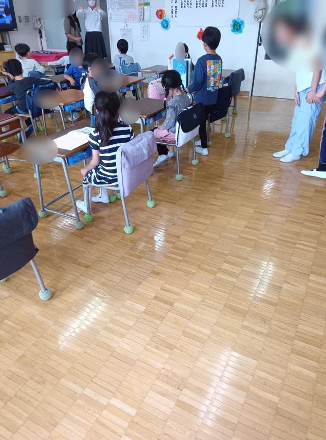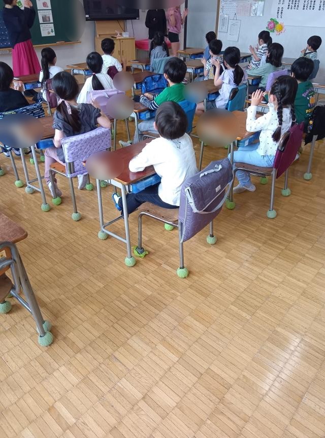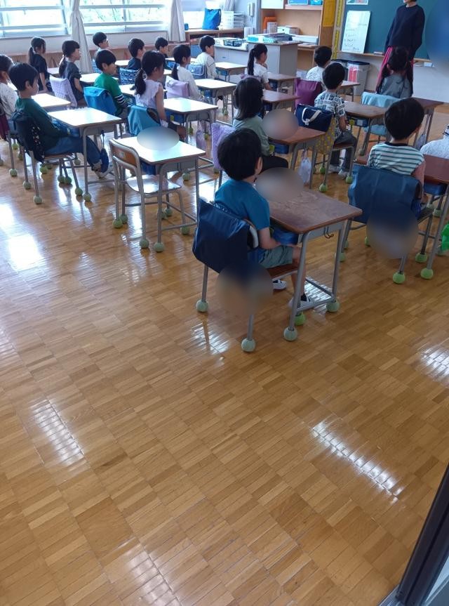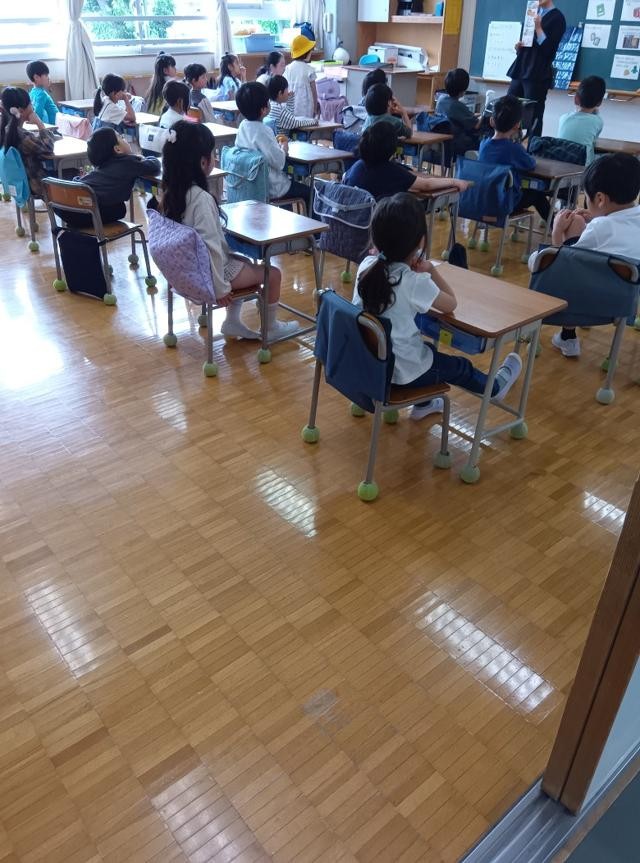 仮組中の1年生、今日からまた担任がとなりの学級に動いています。今朝は子どもたちの朝の支度が終わって席に着いてから、改めて担任が自己紹介をし、1日をスタートしていました。ここまで学年での関わりも多かったので、すでによく知っているという子もたくさんいたようです。