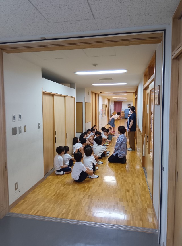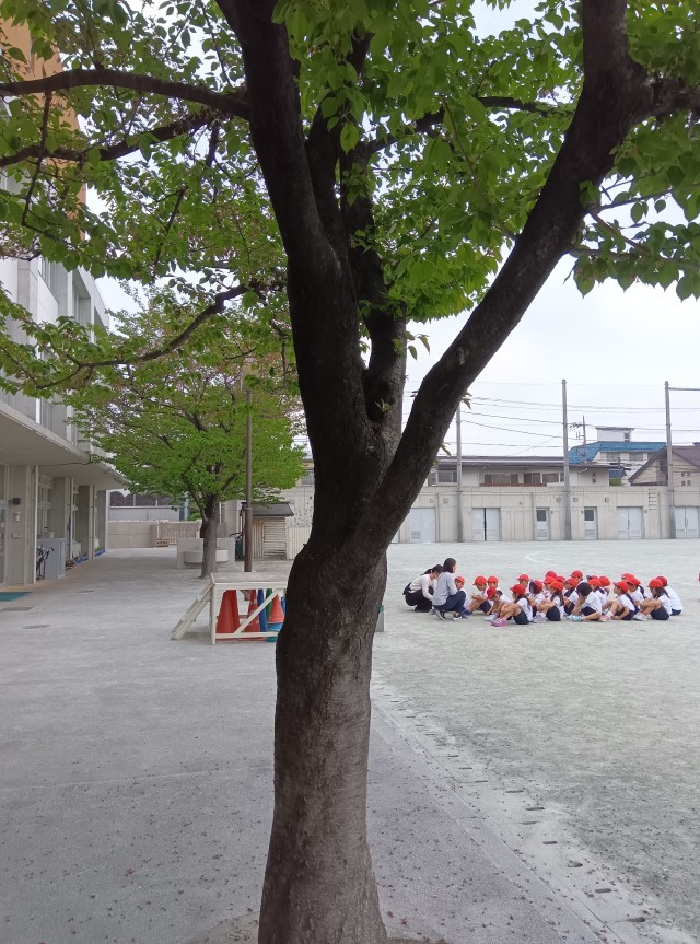 1年生の教室で見付けました。いよいよ平仮名の学習も始まるようです。体育着の写真は、昨日の体育です。出だしで整列しているところだけしか見られませんでしたが、しっかり並べていました。その前には、心臓健診もあり、そのときに体育着に着替えて、そのまま体育だったようです。今度は、体育で運動している様子もお伝えしますね。