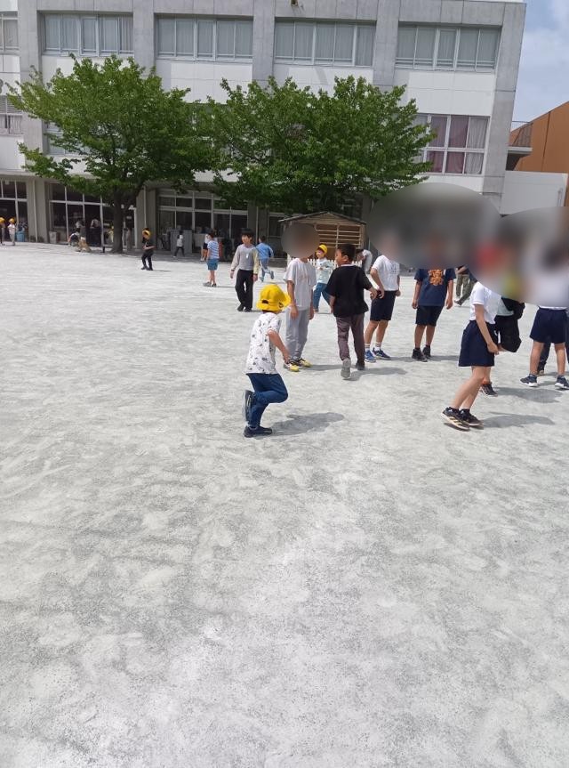 さてえ、中休みは良い天気でした。1年生も元気に遊具で遊んだり、走り回ったりしています。他学年と過ごす姿もあちこちで見られました。ただ、「6年生といないな」と思っていたら、休み時間が終わり、6年生が第二校庭から戻って来るのが見えました。「6年生が」いなかったんですね。