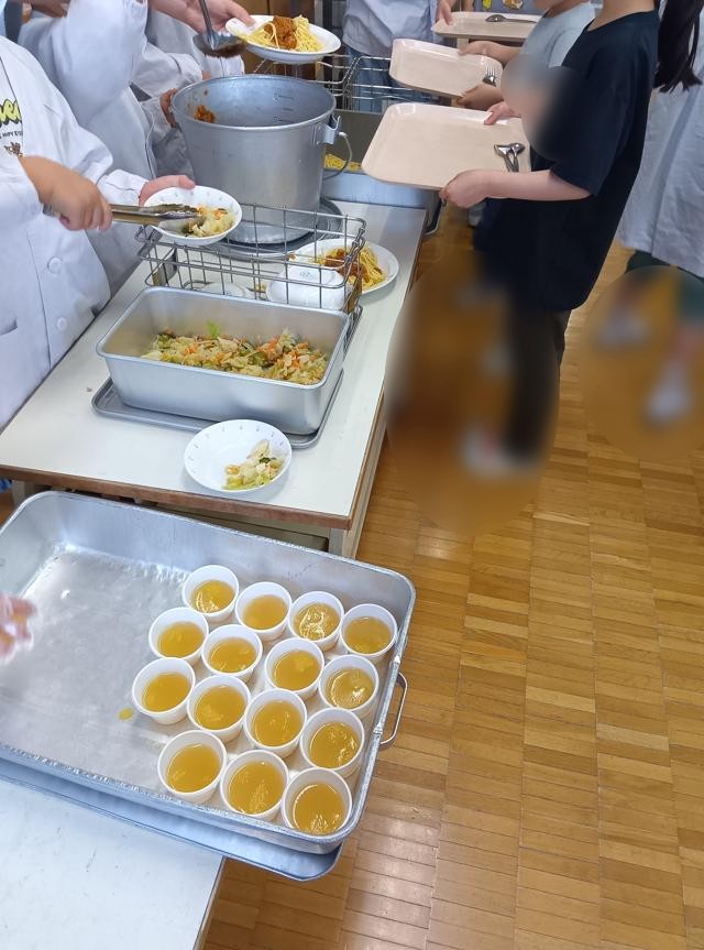 余談ですが、給食のゼリーと言うと、硬くてスプーンを弾き返すような弾力をもったゼリーを想像されるかもしれません(昔は結構そうでした)が、京西小学校のゼリーはジュースを使って作られていて、滅茶苦茶柔らかくて美味しいです。お子さんに聞いてみてください!