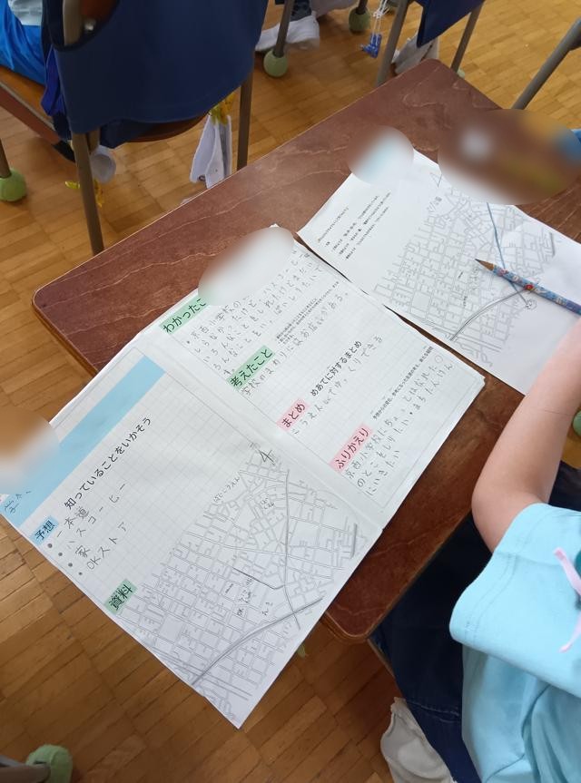 3年生、先日用賀の町たんけんにでかけた結果を確認したり、分かったことをまとめたりしていました。