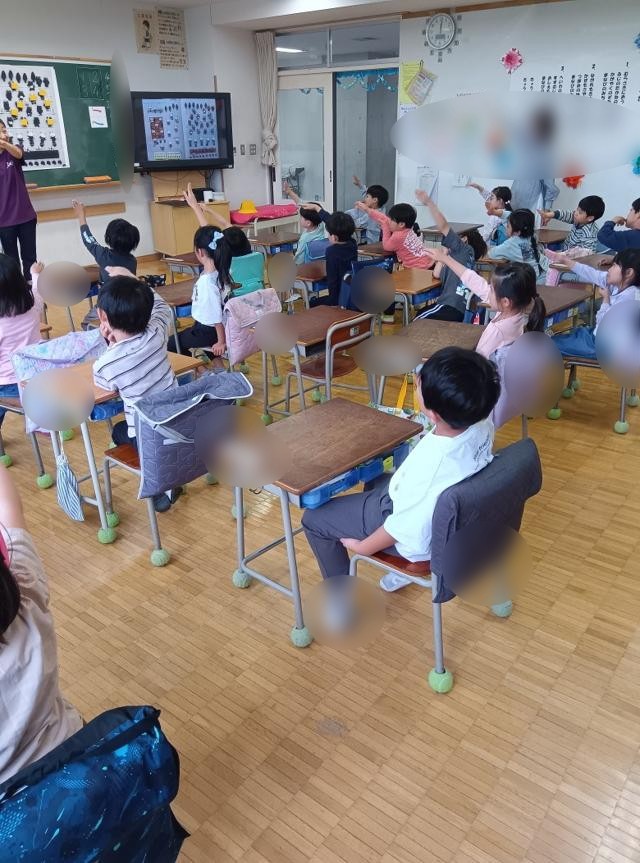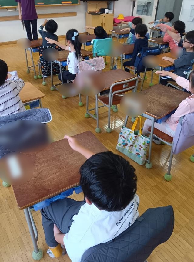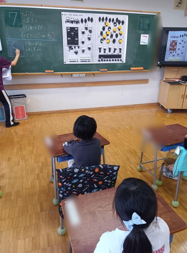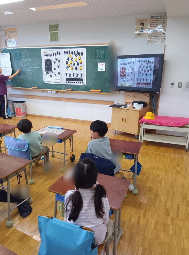 数の数え方と共に、数字の書き方も練習します。平仮名の学習と同じ要領で、先生が聞きます。