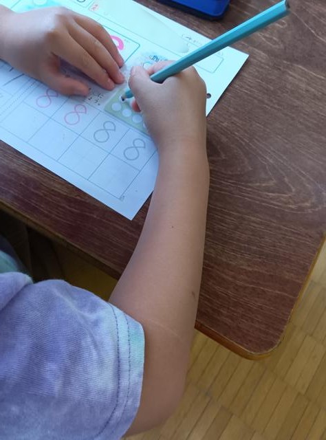数字の学習をしている1年生、先日はその中でも最難関の「8」の練習をしていました。