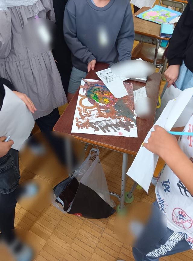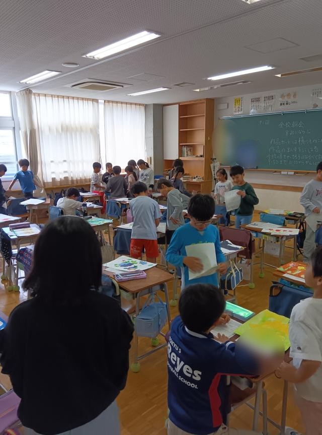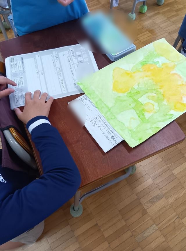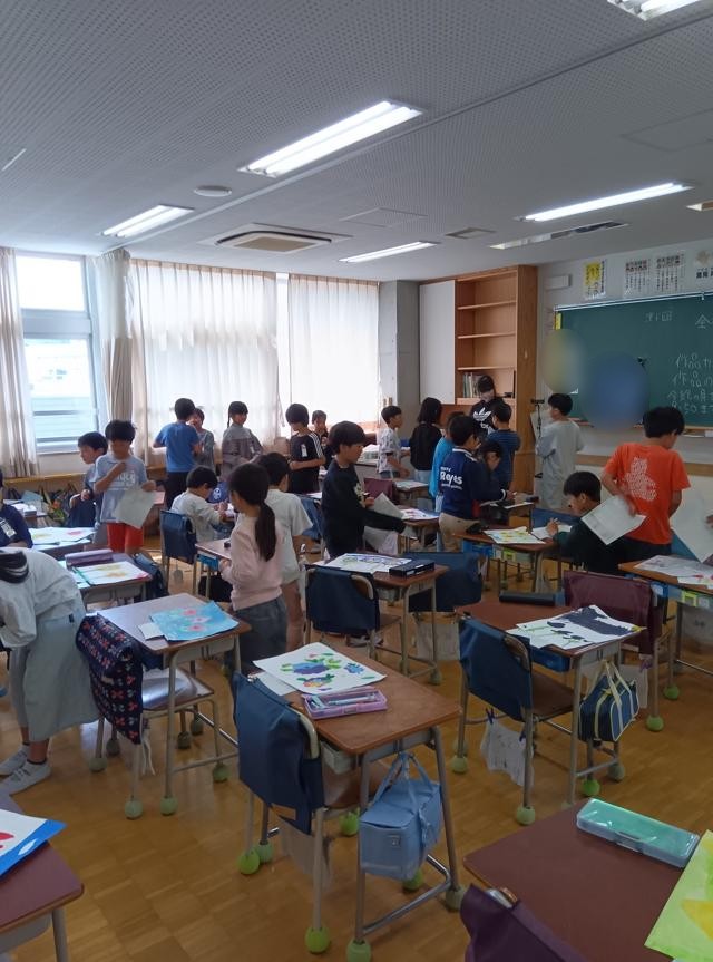 図工では、鑑賞までが作品づくりのセットになっています。友達と作品を見合い、それぞれの良さを認め合う場になります。良いところがあれば、吸収するチャンスです。あまり、自分が図工で鑑賞をしていた覚えがないのですが、保護者の皆さんはいかがでしょうか。こういう機会が多いからか、子どもたちは、作品の見方やほめ方がとても上手だなあと思います。すてきなスキルです。