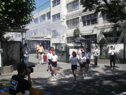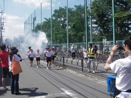 用賀小学校をスタートし、京西小学校を通り用賀中学校に入り、聖火台に点火します。