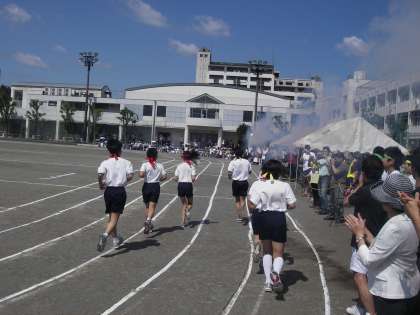 用賀中学校の運動会は、聖火リレーから始まります。ようがの学び舎の一員である京西小学校、用賀小学校からも聖火ランナーが参加します。